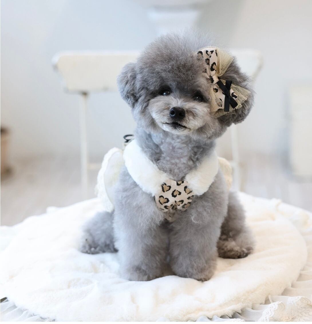 ふわふわファーの可愛い肩紐、ハートのビジューが付いた大きいリボンがポイント☆
