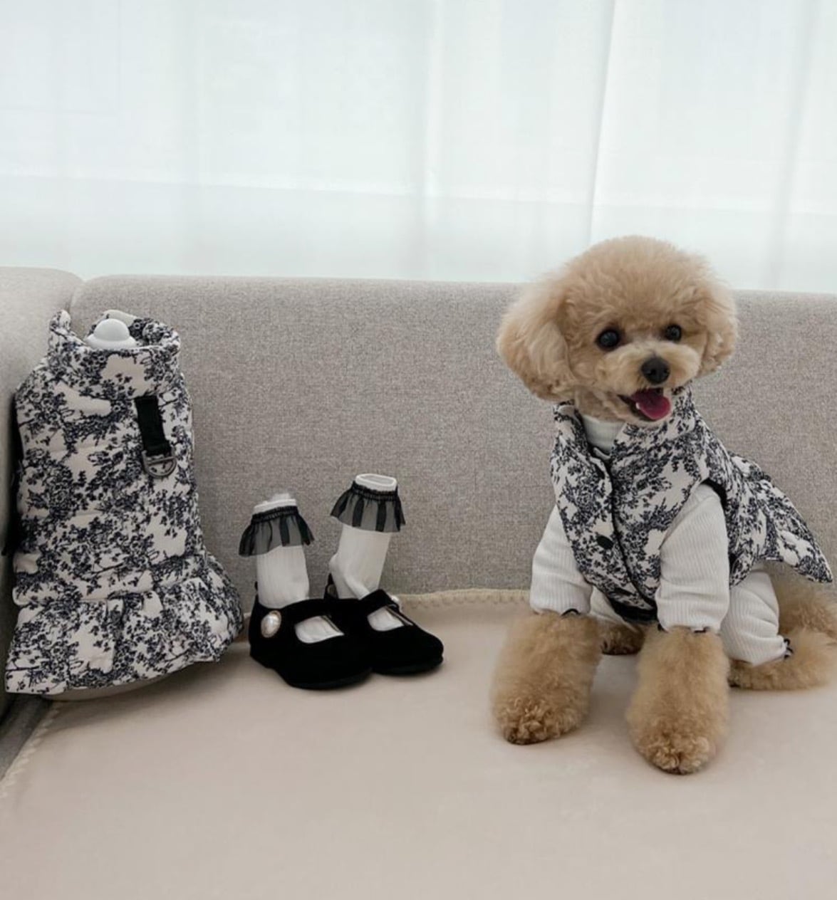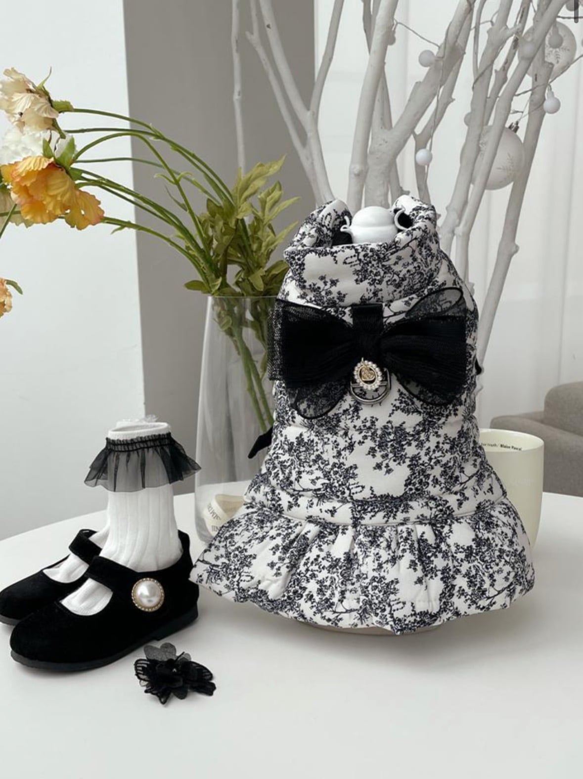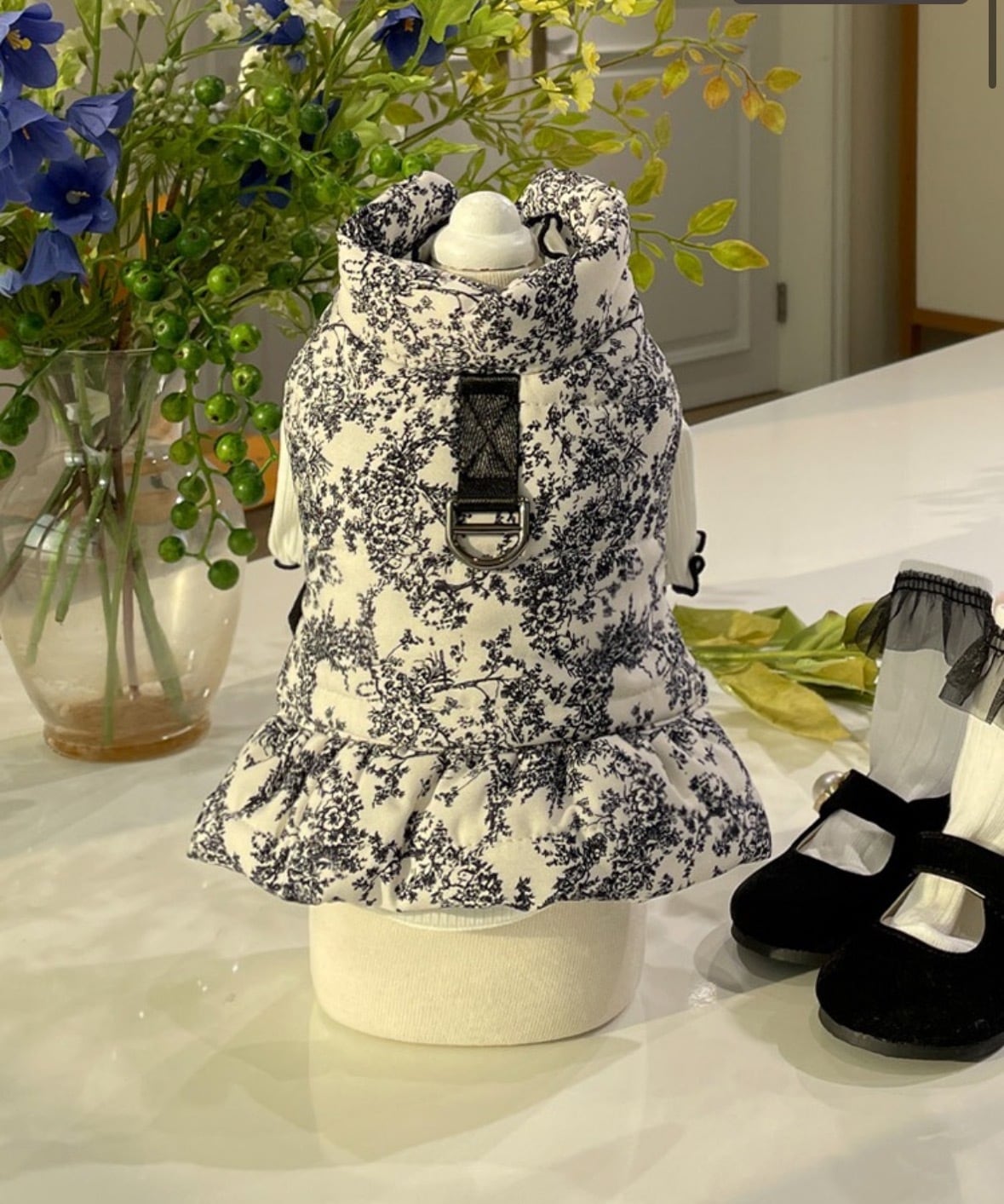 ブラックのお花柄がシックでキュートなダウンハーネス♡