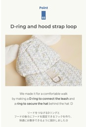 リードにつなげるDリングとフードの後ろにフードを固定できるフックあるので、快適にお散歩ができます!