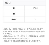 ・服S、SM-帽子S /服M、L-帽子Mが発送されます。
