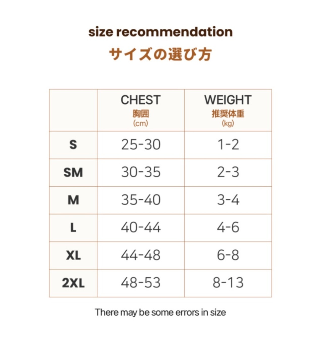 ・毛が長めのワンちゃんはワンサイズアップすることをお勧めします。