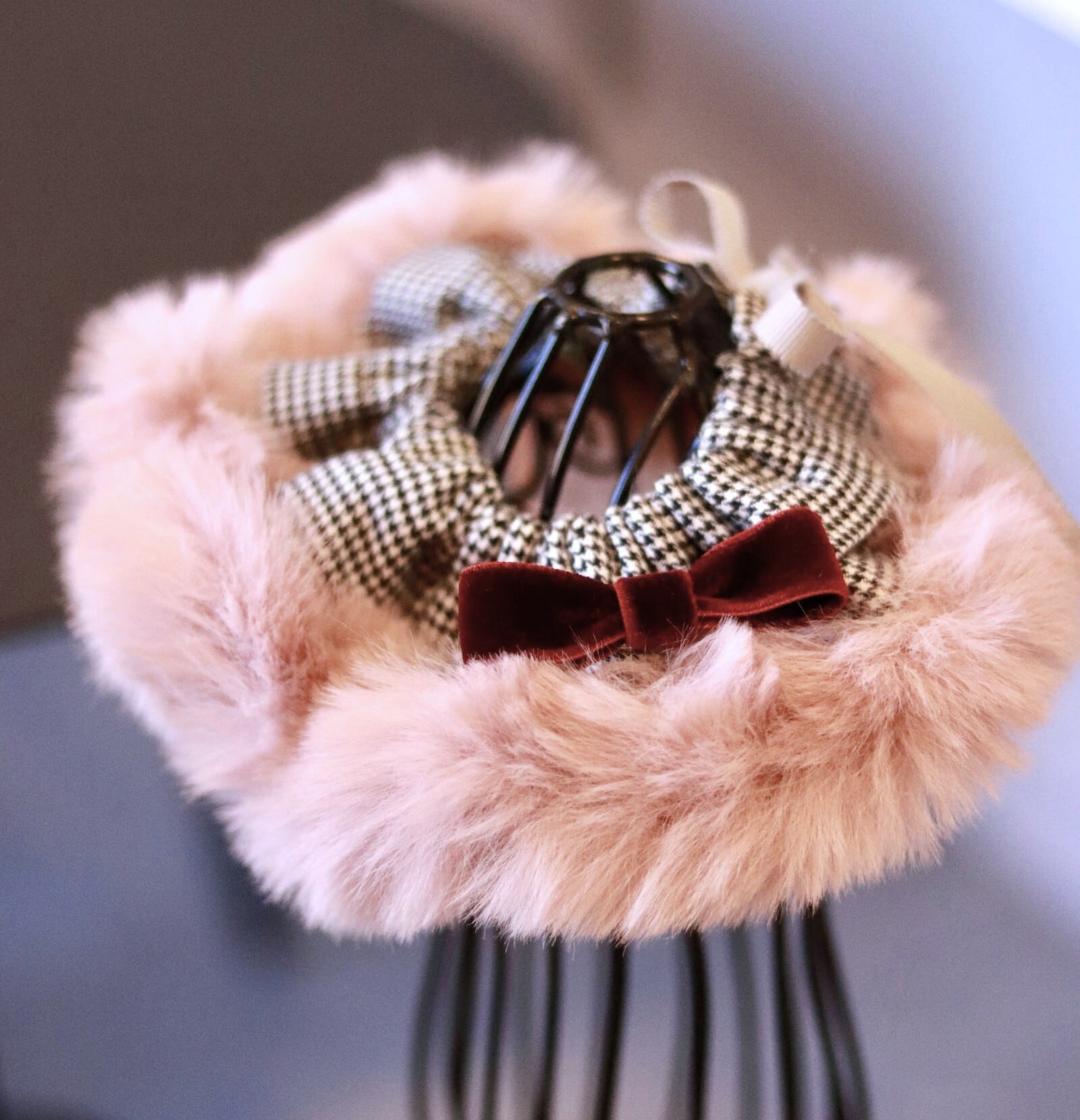 画像につけているベルベットのリボンブローチは、「オプション追加」の項目から追加購入いただけます。