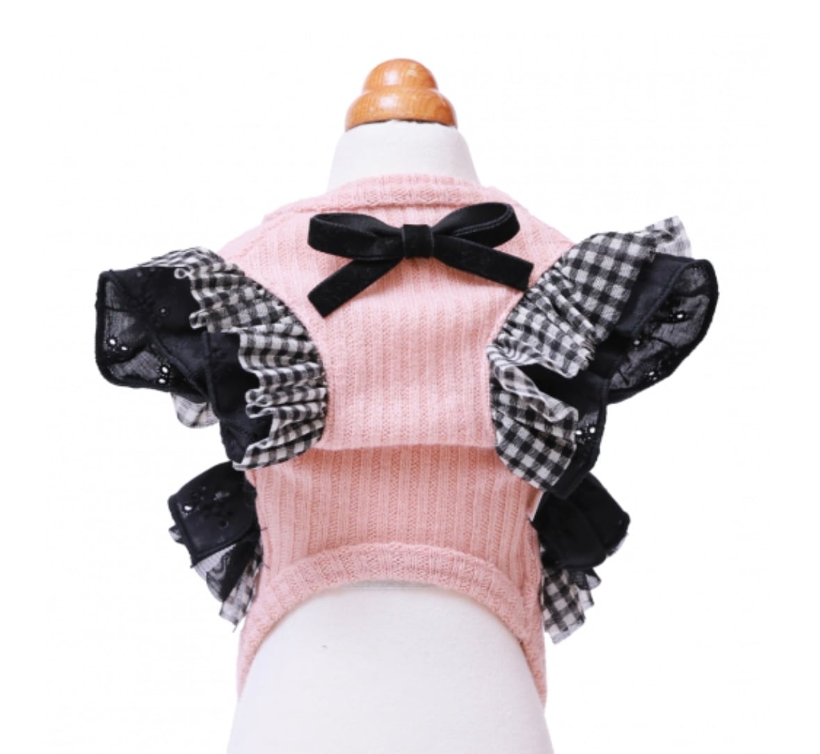 上質なリブニットとコットンレースを組み合わせた大人かわいいお洋服。